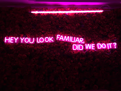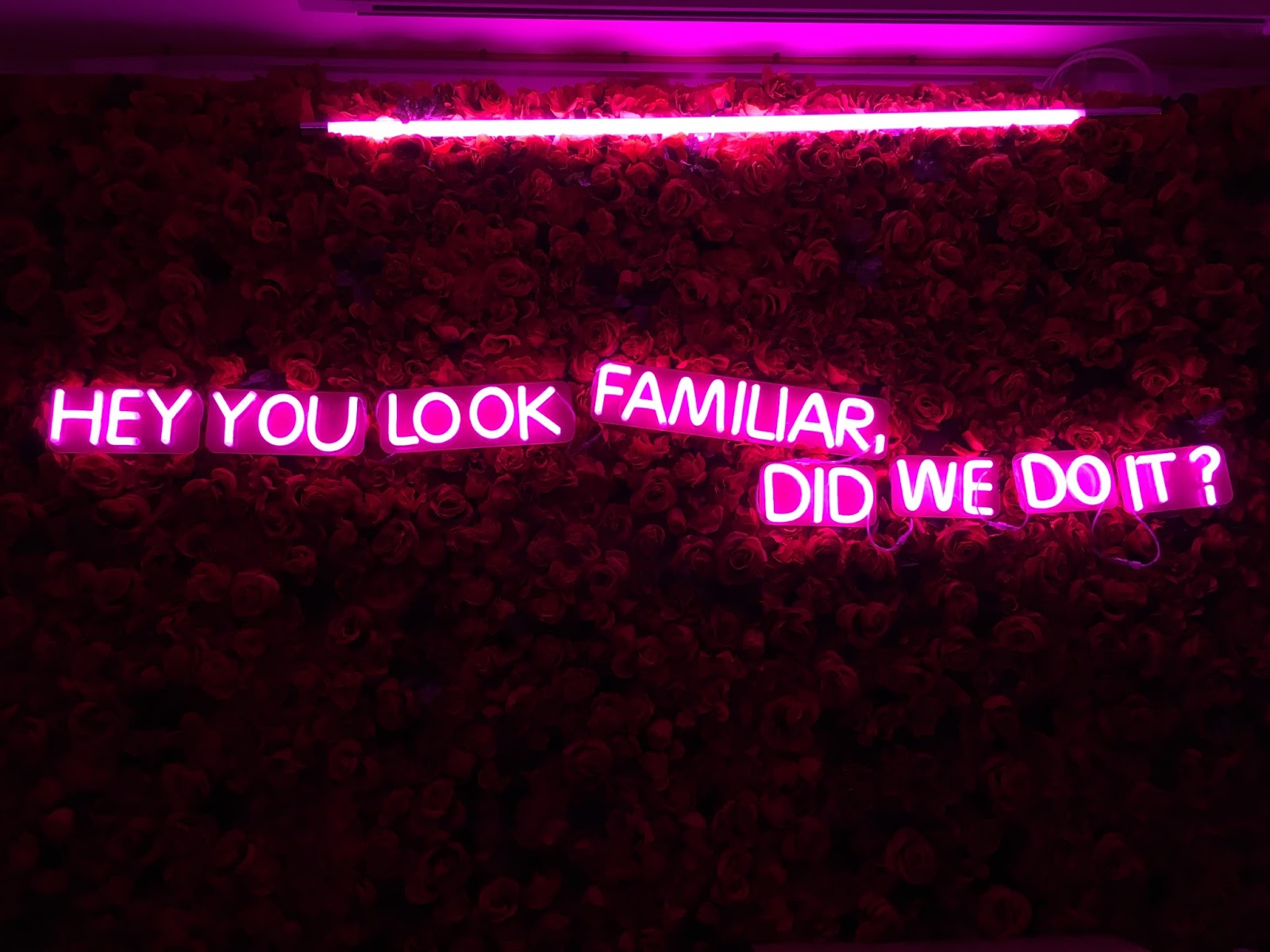 This tongue-in-cheek sign is inlaid on a wall of roses, and really sets the tone of the collection; a sickeningly romantic rose covered wall with a contrastingly direct question glowing out of the dark.
